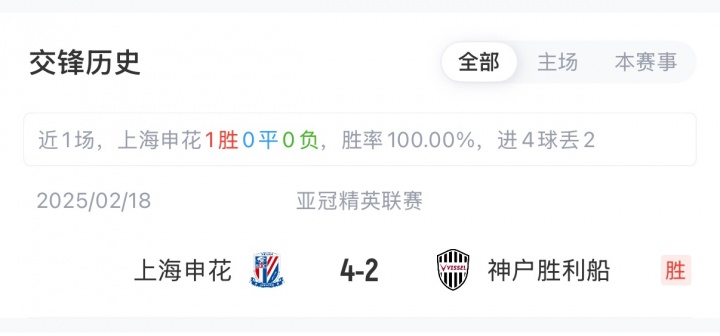 亚冠前四轮,申花1胜1平2负积4分排在倒数第二,神户则是3胜1负积9分;本年2月两队曾有过一次交锋,申花在主场4-2驯服神户奏效船。