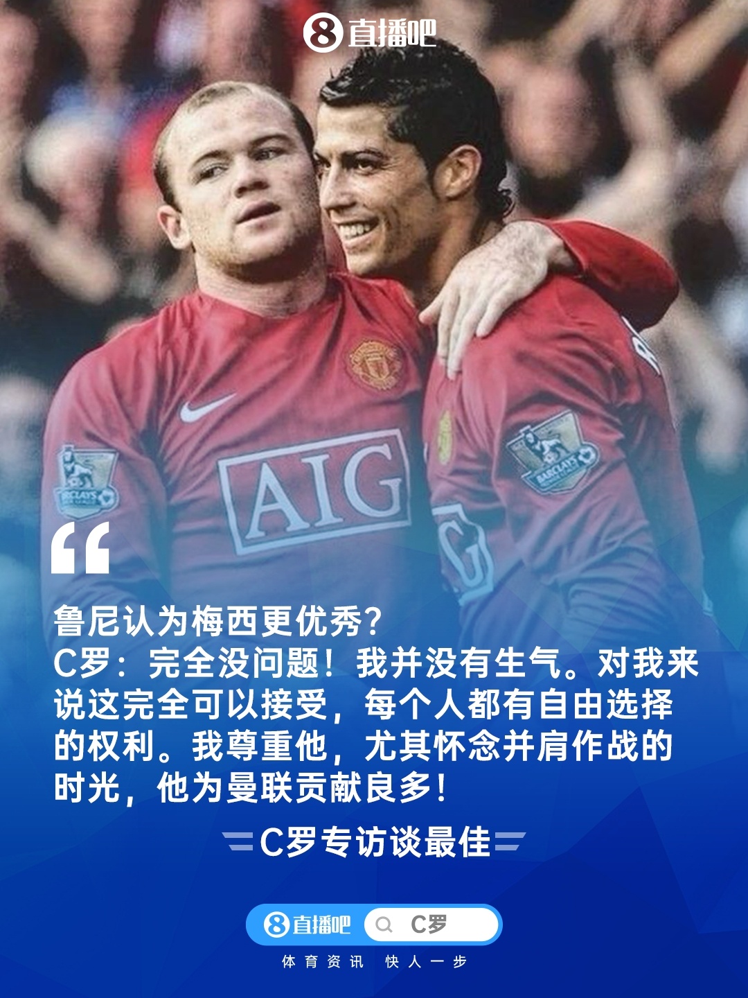 摩根:韦恩·鲁尼,你的老队友上周说他并不歧视你(尽管有东说念主那么说),他其实很可爱你,称你为天才。他说你们的联系比外界设想的要亲密,但他仍然认为梅西更优秀。