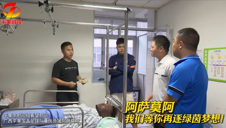 10月08日讯 “平果融媒”发布视频, 平果市慰问组访问广西重伤外助阿萨莫阿,奉上球迷回想。