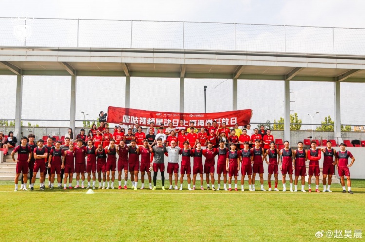 10月12日讯 上海海港俱乐部举行盛开日活动,俱乐部新闻官赵昊晨晒出了球队与球迷合影的全家福像片。