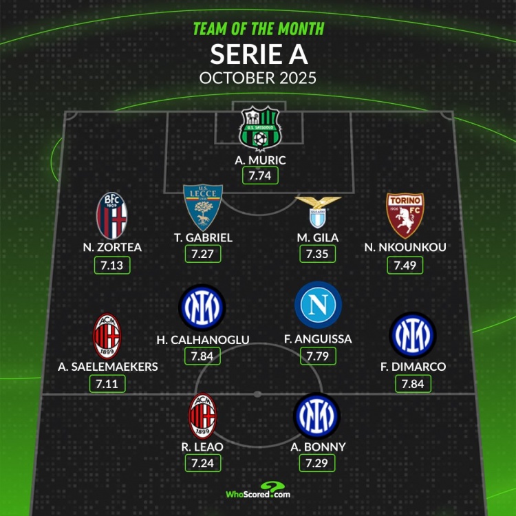 WhoScored意甲10月最好威望