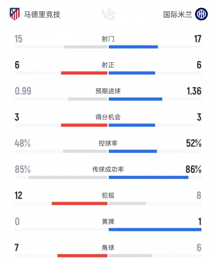 11月27日讯 欧冠联赛阶段第5轮比赛,马竞主场2-1打败国米。