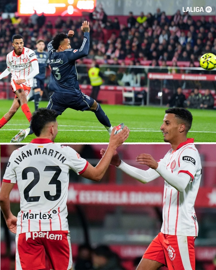 12月1日讯 西甲第14轮皇马客战赫罗纳第45分钟,奥纳西中路无东谈主盯防,跟进兜射破门。