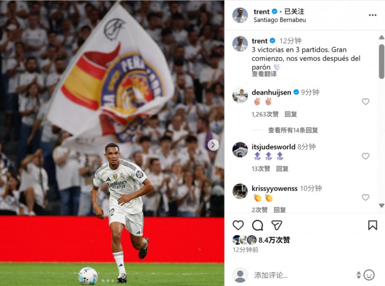 皇马新援阿诺德也在社媒晒出本场相片,配文写谈:“3场比赛3场到手,这是好的启动,让咱们在国外比赛日之后再会!”