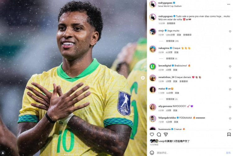 赛后罗德里戈也在社媒晒出本场庆祝进球相片,配文写说念:“为管待像今天这么的日子一切付出王人是值得的,止境安详概况追溯。”