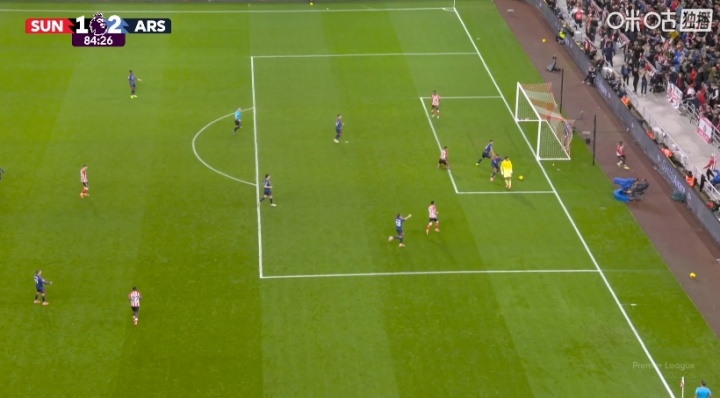 比赛第85分钟,桑德兰迫切,拉亚扑出布罗比的近距离射门后“脱线”没能找到足球,随后在加布里埃尔的领导下将球充公!
