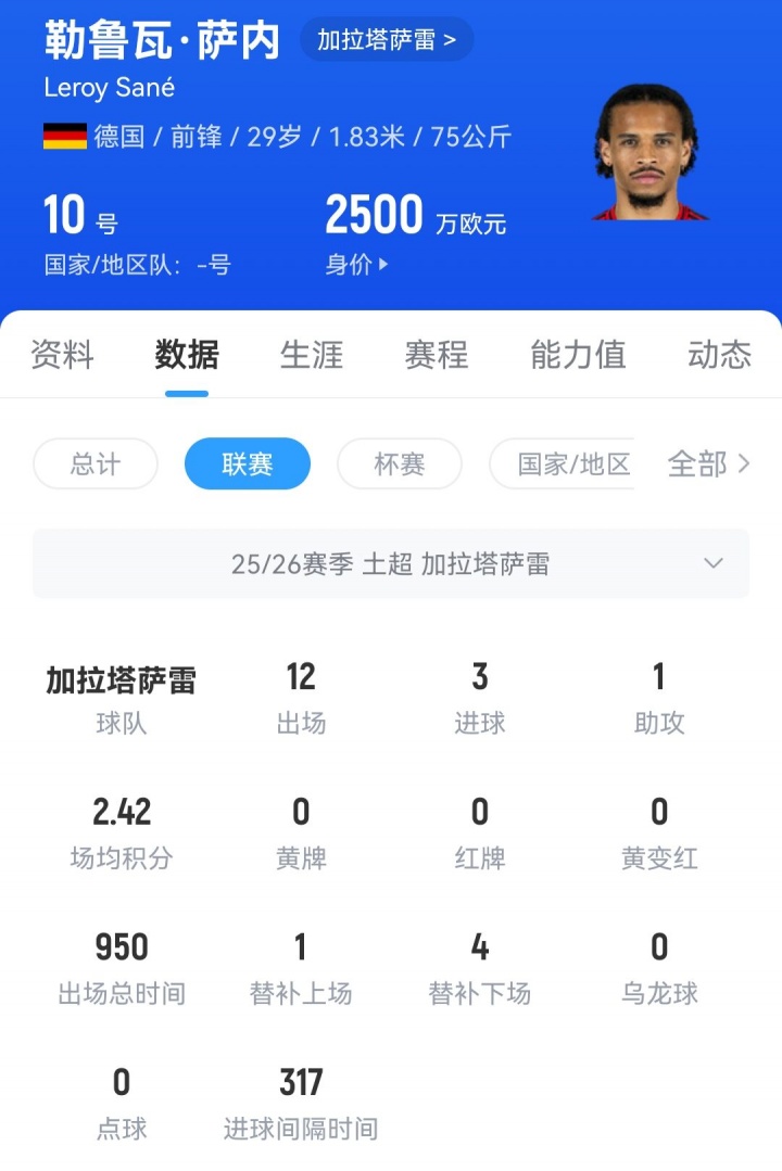 本年夏窗,萨内终拜把子仁降薪续约协议,解放身与加拉塔萨雷签约3年。当今萨内的德回身价仅2500万欧,在曼城着力时,他的身价曾达到1亿欧。
