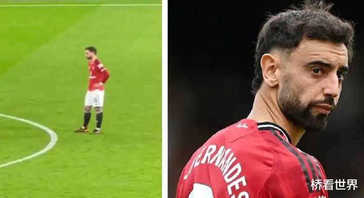 【布鲁诺·费尔南德斯在不敌利兹联后,原地呆立被镜头拍下】