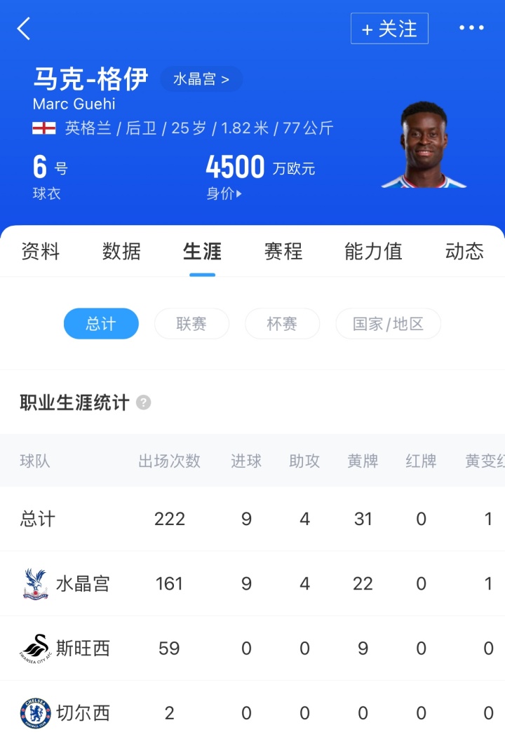 现年25岁的格伊出自切尔西青训,2021年夏天他以2334万欧的转会费加盟水晶宫。于今为水晶宫出战161场孝敬9球4助。本赛季格伊还是代表水晶宫出战3轮英超,而况在本轮比赛轰入1粒精彩的天下波。现时其德回身价为4500万欧。