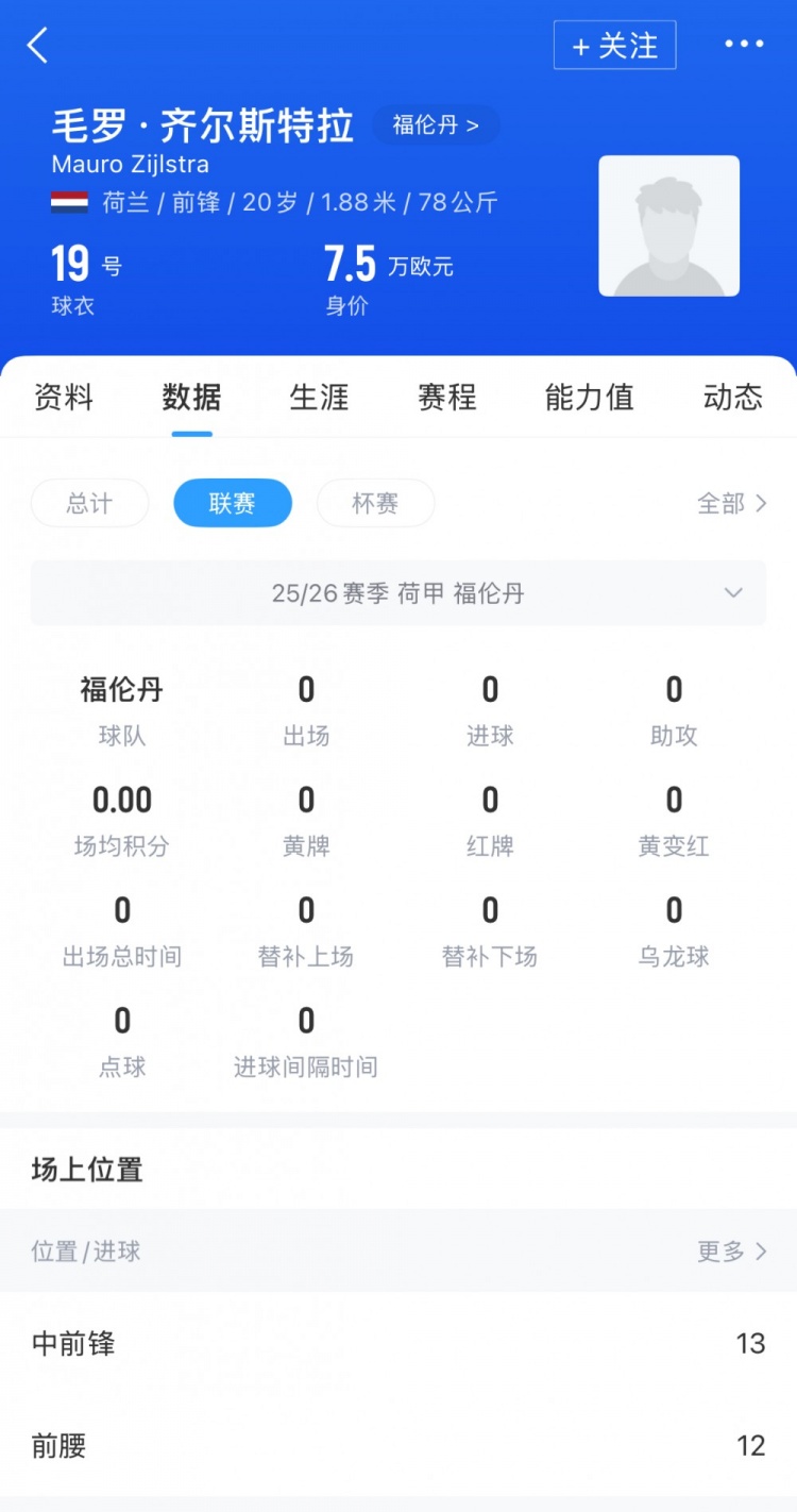 毛罗-皆尔斯特拉,出谈于奈梅亨青训,本年1月转会到福伦丹服从,上赛季在青训队和一线队共出战28场,打进17球助攻7次,随队取得上赛季荷乙冠军,当今德回身价.75万欧。