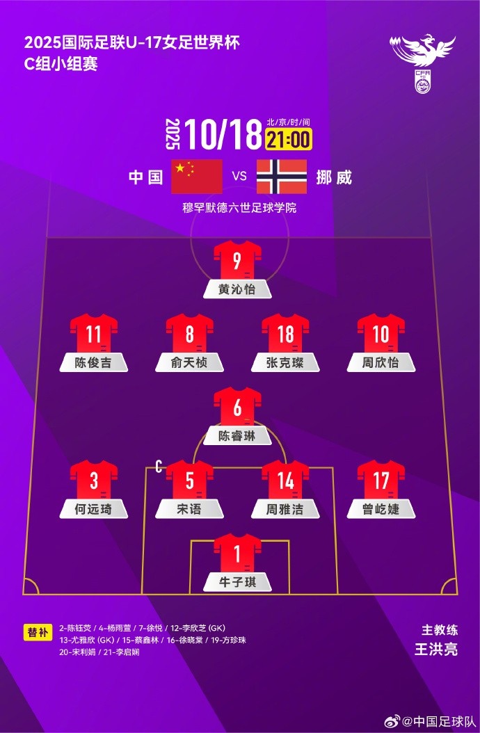2025海外足联U-17女足宇宙杯C组小组赛,中国队 VS 挪威队首发名单出炉!