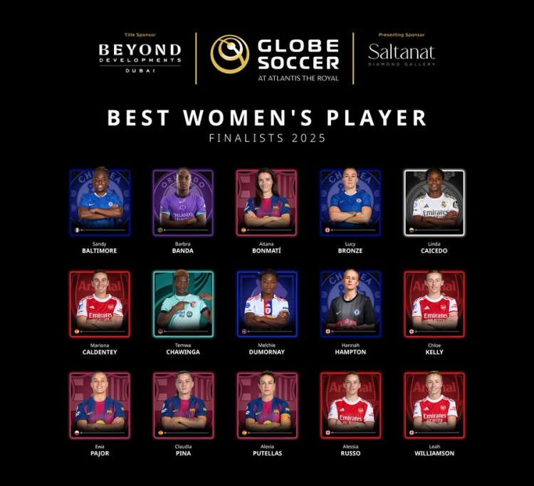 环足奖2025年最好女足球员15东谈主最终候选名单: